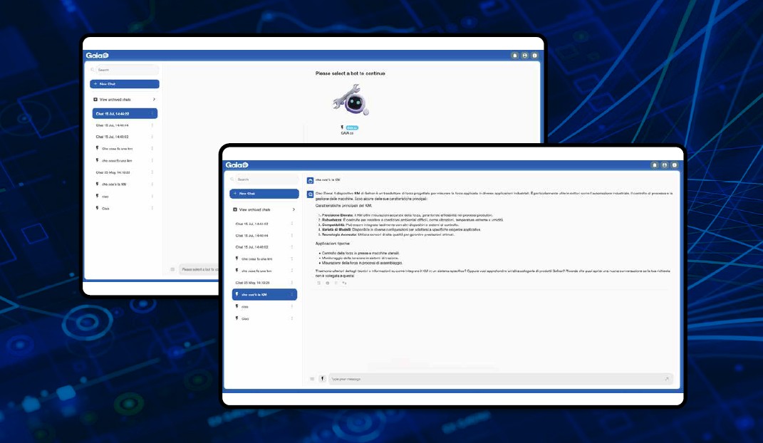La seconda è GAIA (Gefran AI Assistant), assistente virtuale basato su IA generativa che supporta operatori e manutentori nella gestione quotidiana, fornendo risposte contestuali su stato macchina, consumi, prestazioni e documentazione tecnica.